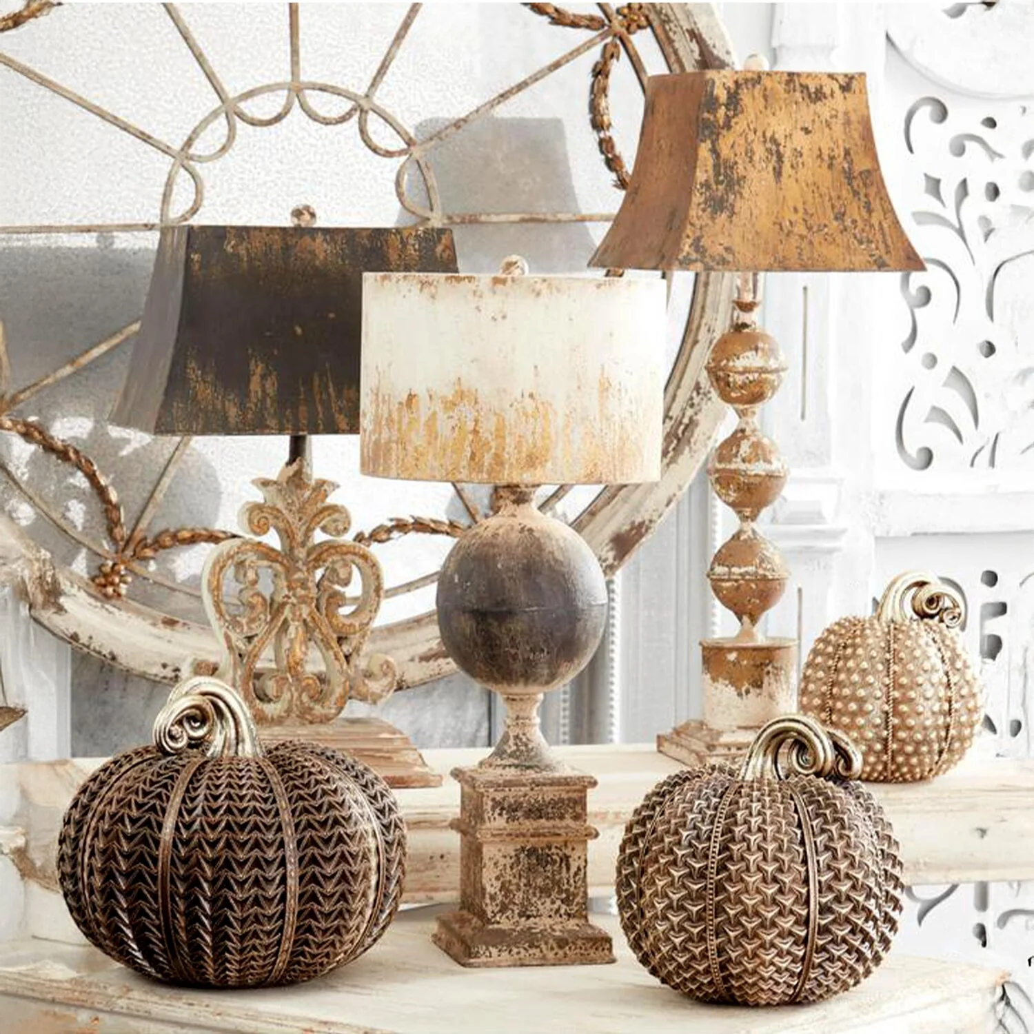 Resin Antique Gold Raised Arrow Textured Pumpkin, 11.5"